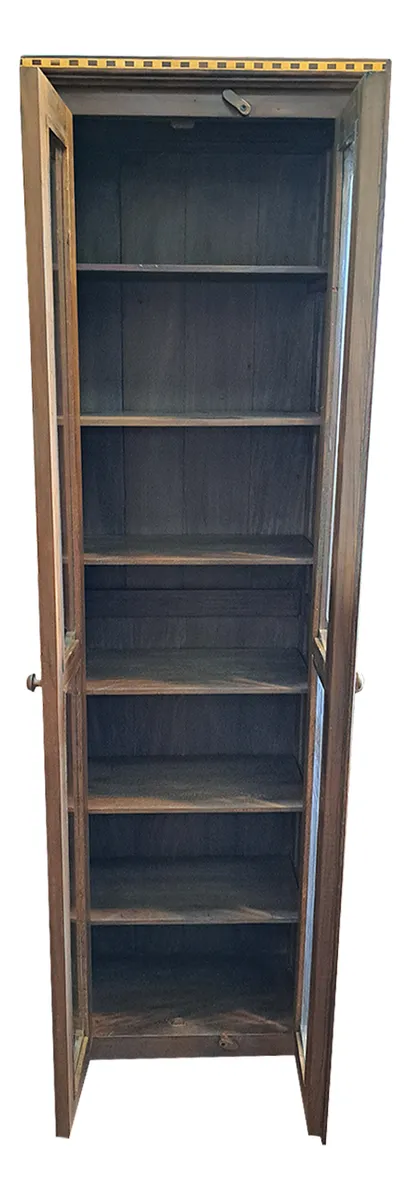 Armario cristaleira com vidros nas portas, detalhes em marchetaria, ideal para guardar DVDs, CDs, livros pequenos, coleções.
